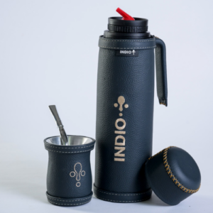 Termo Indio Acero Inoxidable 1.3 Litros Frío/Calor Faja Cuero Negro con Guampa Tereré+Mate – Alpaca