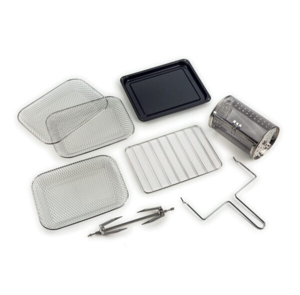 Para grandes cantidades de alimentos fritos y mucho más crujientes, capacidad de 16L. Válido para pescado frito, carne, croquetas, patatas y alimentos rebozados. Cesta transparente. Con luz interior. Con la Air fryer y Horno Vintage podrás freír cualquier plato que desees en grandes cantidades utilizando tan solo una cucharada de aceite para obtener unas frituras sanas y sabrosas. Gracias a su capacidad de 16L , con la Air fryer Vintage de Ariete podrás cocinar ¡muchísimas frituras a la vez! Frituras, pero no solo eso, también croquetas, pescado, carne y un sinfín de alimentos rebozados, ya sean congelados y listos para freír o frescos y recién rebozados. ¿Cómo funciona la freidora de aire? La freidora de aire cocina gracias al aire a alta temperatura, regulable desde 80°C hasta 230°C , que circula a máxima velocidad a 360° dentro de la cámara de cocción y garantiza una distribución uniforme del calor en su interior. Es el aire caliente el que permite una cocción homogénea de los platos y la presencia de una corteza crujiente, tan buena como la fritura tradicional. Gracias al aire caliente, no será necesario añadir tanto aceite para obtener una fritura sabrosa, ya que bastará con una cucharada sopera ; de esta manera llevarás a la mesa platos más ligeros, pero sabrosos para toda la familia. Fríe y hornea como a ti y a tu familia les gusta. Puedes utilizar los accesorios suministrados: 3 cestas perforadas de acero inoxidable para separar los alimentos y cocinarlos simultáneamente, una cesta giratoria para una cocción uniforme y un asador para asar el pollo. Mediante las asas es posible regular los tiempos de cocción, los programas, la temperatura y el temporizador. La freidora de aire y horno Vintage es fácil de limpiar y tiene un bajo impacto ambiental, ya que no produce aceite usado, uno de los residuos en circulación más difíciles de eliminar. Garantía de 12 meses por desperfectos de fábrica. - Imágenes meramente ilustrativas.