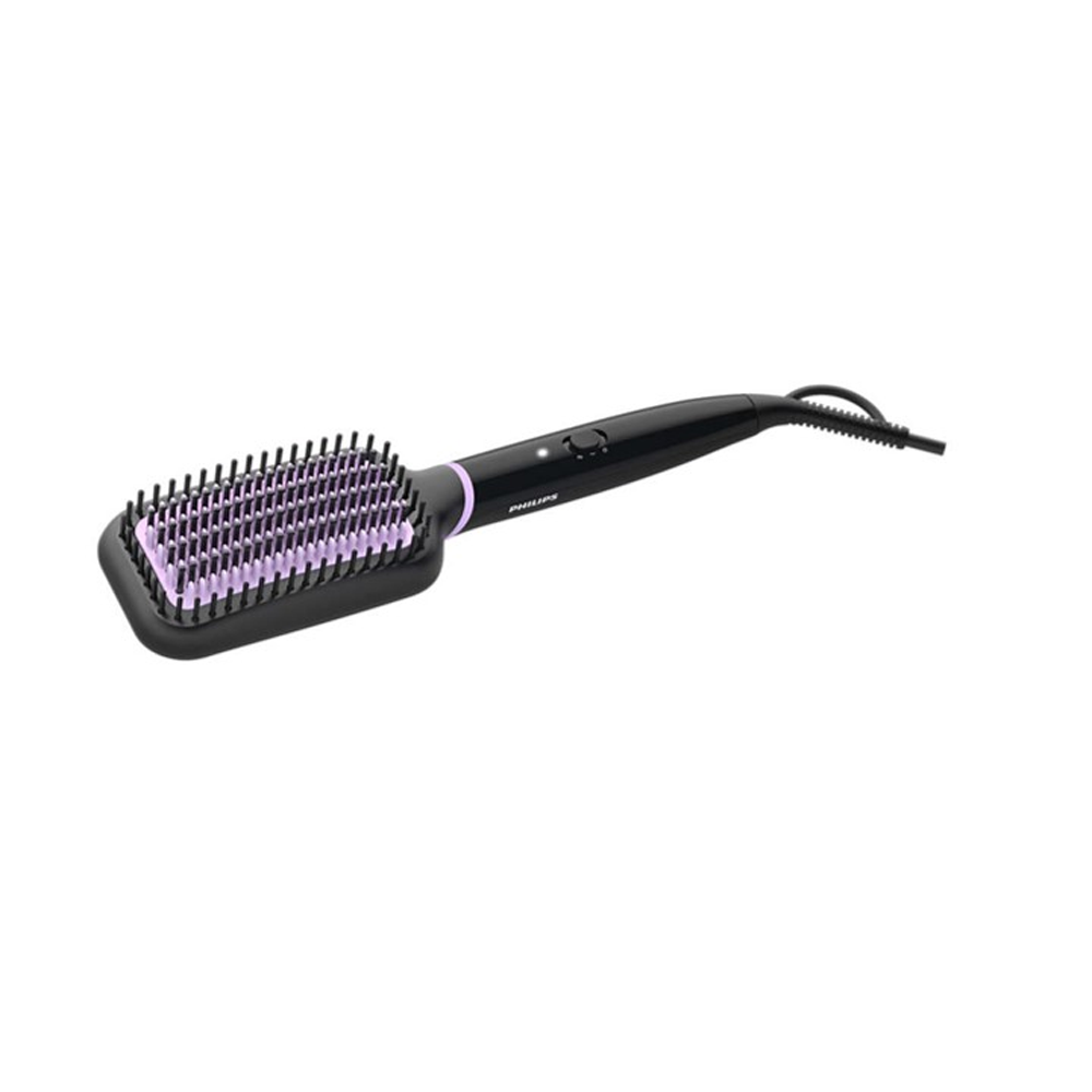 Cabello liso natural dentro de 5 minutos* Luzca un cabello liso natural y brillante en tan solo 5 minutos. Nuestra tecnología ThermoProtect y diseño de cerdas funcionan de forma conjunta para conseguir un aspecto saludable y sin frizz. Revestimiento cerámico con turmalina para conseguir un cabello brillante, suave y sin frizz. La tecnología ThermoProtect mantiene una temperatura constante en todo el cepillo para evitar que se caliente en exceso y ayudarla a lucir un pelo protegido y de aspecto sano. Dos posiciones de temperatura (170°C y 200°C) que se adaptan a tu tipo de cabello. El diseño de cerdas triple desenreda con cuidado, alisa y protege el cuero cabelludo del calor. El diseño en forma de pala permite alisar más pelo en una pasada. Listo para usar en 50 segundos. La luz LED indica si el cepillo está listo para usar. Cable de 1,8 m. Cable giratorio para un uso cómodo. Con 6 meses de garantia