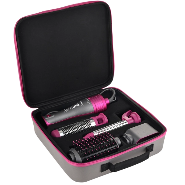 Características principales: Desenreda, alisa, da volumen y riza, con un acabado perfecto en minutos.. Diseño ovalado y revestimiento cerámico.. 4 cabezales intercambiables para diferentes usos:. Rizador de 19 mm. Rizador de 38 mm. Concentrador. Cepillo ovalado de 60 mm. 2 velocidades.. 3 temperaturas: caliente, templado, frío. Generador de iones.. Cable. giratorio de 360°. Tapa trasera extraíble. Voltaje bivolt ideal para viajes. Imagenes meramente ilustrativas. Garantia 3 Meses