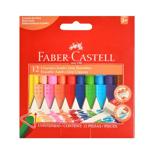 Crayolas Faber Castell Jumbo Grip Borrables 12 Colores