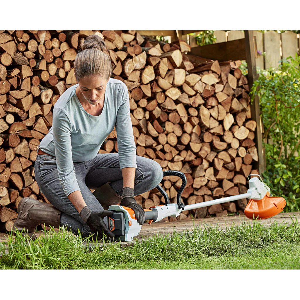 La desmalezadora a batería STIHL FSA 57 es una herramienta compacta y ligera, diseñada para el mantenimiento de césped y bordes en jardines domésticos. Su funcionamiento silencioso y sin emisiones la hace ideal para su uso en áreas residenciales. ANCHO DE CORTE 280 mm. PESO 2.7Kg. PESO * (con batería recomendada) 3.5Kg. SERIE DE BATERIA AK. TIEMPO DE FUNCIONAMIENTO (con AK 10) hasta 25 min. Compatible con el sistema de baterías STIHL AK, ofreciendo una duración adecuada para tareas de jardinería doméstica. La batería tiene una autonomía para aproximadamente 25 minutos de uso.