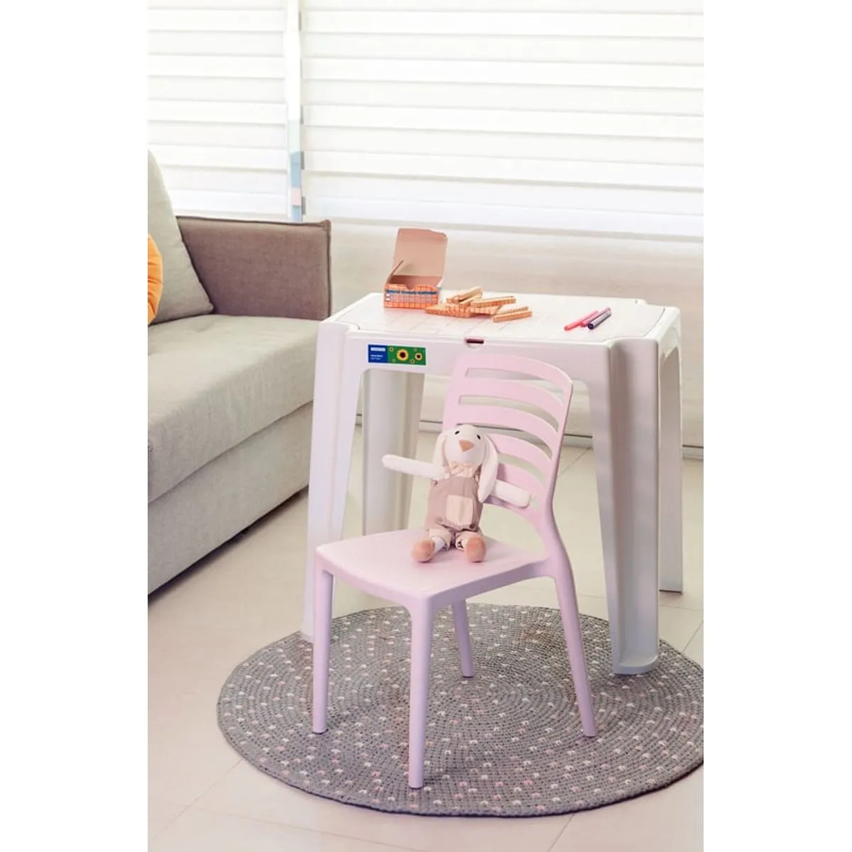 Juego Infantil de Mesa y Silla Tramontina 92341-016 Beni en Polipropileno Rosa con Tablero de Actividades