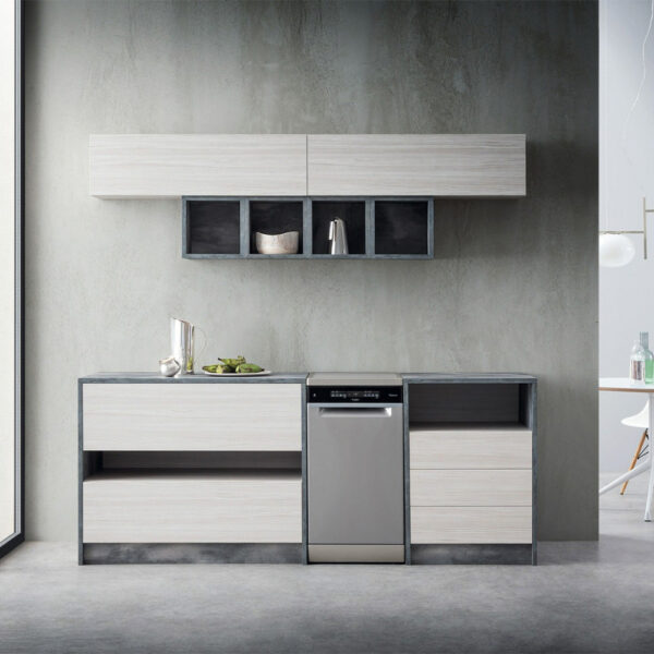 Detecta el nivel de suciedad y adapta la presión del agua según el nivel de suciedad. Potentes inyectores de agua en la parte trasera de la máquina trabajan para ofrecer resultados de limpieza extraordinarios contra la suciedad más incrustada. Los sensores inteligentes detectan el nivel de suciedad y adaptan respectivamente la presión del agua. Sensores inteligentes ajustan la intensidad del lavado y uso de recursos según la suciedad de las vajillas. Tecnología inteligente, resultados de lavado excepcionales ahorrando hasta un 50% de recursos. Disfrutá tu espacio con la libertad que necesitás. Gestión ideal del espacio. Añade, remueve o adapta el espacio en el interior de tu lavavajillas en función de tus necesidades, gracias a las bandejas modulares y a las varillas abatibles. Flexi Space Disfrutá tu espacio con la libertad que necesitás. Gestión ideal del espacio. Añade, remueve o adapta el espacio en el interior de tu lavavajillas en función de tus necesidades, gracias a las bandejas modulares y a las varillas abatibles. MEDIDAS DEL PRODUCTO * Alto 85 cm. * Ancho 45 cm. * Profundidad 59 cm.