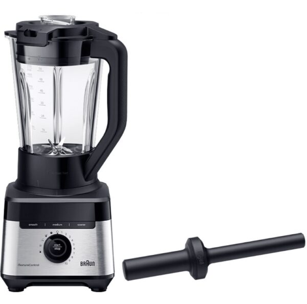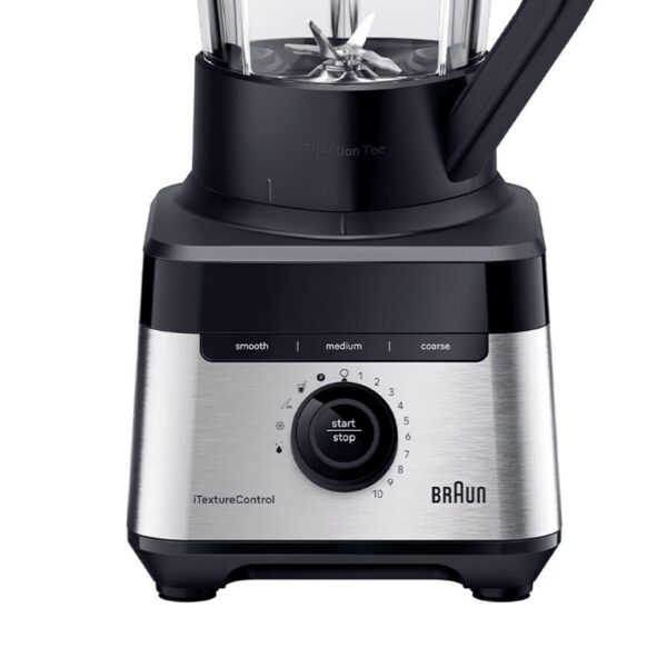 Potencia, precisión y personalización en cada mezcla.rn La Braun PowerBlend 7 lleva tus recetas al siguiente nivel con su innovadora tecnología iTextureControl, que te permite elegir entre tres texturas y hasta nueve programas automáticos, adaptándose a tus gustos y necesidades. Con un potente motor de 1400 W y velocidades de hasta 30.000 RPM, esta licuadora ofrece un rendimiento superior, ideal para batidos, cremas, salsas y más. Su exclusivo sistema TriAction elimina los puntos ciegos y asegura una mezcla homogénea redirigiendo eficientemente los ingredientes. El acoplamiento reforzado con metal garantiza durabilidad, mientras que el recubrimiento de goma reduce el ruido para una experiencia más silenciosa. Material del vaso: Vidrio templado Capacidad máxima: 2 l Capacidad de trabajo: 1.7 l Configuración de velocidad: 10 ajustes de velocidad Función de pulsador: sí Programa de limpieza: si Programa para smoothies: si Programa picar: si Programa para picar hielo: si Especificaciones Técnicas Longitud del cable de alimentación: 85 cm Piezas aptas para lavavajillas: si Revoluciones por minuto (RPM): 30000 Material de la cuchilla: Acero inoxidable Potencia (W): 1400 Cuchilla batidora extraíble: si Libre de BPA (piezas en contacto con los alimentos): si Almacenamiento de cables: si Peso del producto: 4,56 kg Dimensiones del producto: 234 x 201 x 425 mm Garantía de 12 meses por desperfectos de fábrica. - Imágenes meramente ilustrativas.