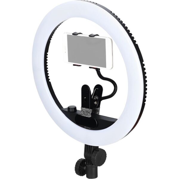 La luz anular Yongnuo YN-408 Bicolor para Celular es el accesorio perfecto para quienes buscan mejorar la calidad de sus fotos y videos. Diseñada por la prestigiosa marca Yongnuo, esta luz LED de video ofrece un soporte integrado para teléfonos móviles con un ancho de 40 a 115 mm, ideal para fotografía y transmisiones en vivo. Destacándose por su ajuste continuo de temperatura de color, que varía entre 3200K y 5600K, y su luminosidad variable de L0 a L9, la YN-408 garantiza una iluminación adaptada a cualquier ambiente. Su diseño en forma de anillo, con un filtro de luz azul, no solo proporciona una captura de luz impresionante, sino que también realza la belleza de los ojos, haciéndolos brillar. Con su capacidad para proporcionar una luz frontal uniforme y suave, elimina las sombras y mejora los contornos faciales, ofreciendo una piel radiante. La luz también cuenta con un soporte fijo para montaje y una perilla ajustable a 360 grados, permitiendo capturar cada ángulo deseado. Ideal para influencers, fotógrafos y creadores de contenido, la YN-408 es esencial para lograr resultados profesionales.Imagen ilustrativa. Garantía 1 año