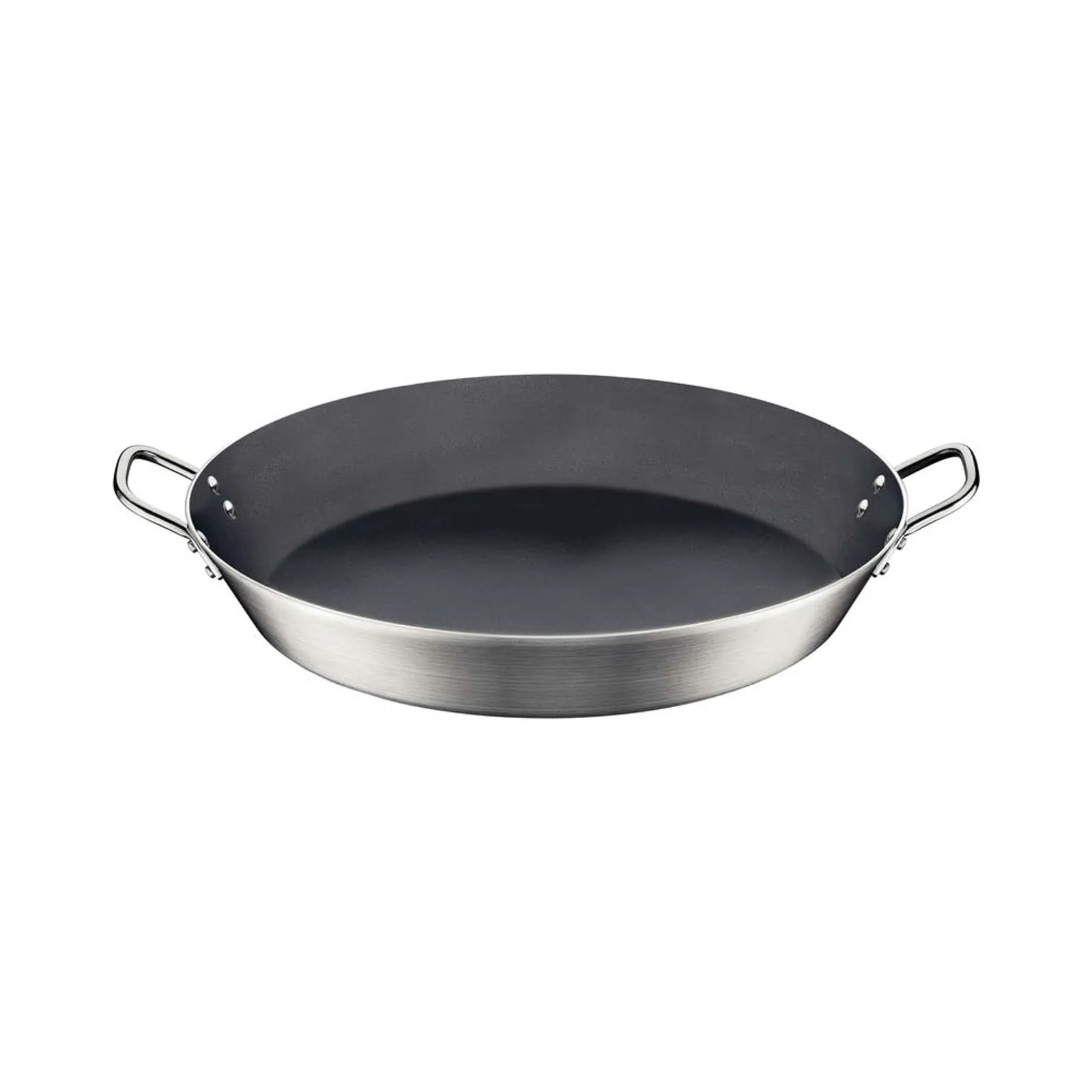 Para preparar paellas o risottos, la paellera Tramontina Profesional en aluminio con revestimiento interno con antiadherente Starflon Premium y acabado externo lijado de 60 centímetros de diámetro y 18,2 litros es la elección ideal. Ofrece todas las características necesarias para las preparaciones más variadas y de manera ágil, ya que está fabricada en aluminio con revestimiento interno con antiadherente Starflon Premium. Para un manejo más estable y seguro, sus asas son de acero inoxidable y están fijadas con cuatro remaches. ¡Una sartén en la cual los alimentos no se pegan y que transformará la rutina en la cocina de restaurantes, hoteles y comedores!. Imágenes meramente ilustrativas.