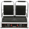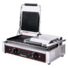 Profesionales, compactas y potentes con placas superior e inferior ranuradas de hierro fundido de alta resistencia. Cocinan rápidamente aplicando calor y presión por ambos lados con buena distribución del calor y cocción uniforme de los alimentos. Cocinan todo tipo de carnes, pescados, verduras y sándwiches, con resultados crujientes y jugosos. Ideales para uso intensivo diario. • Cuerpo en acero inox. • 4 placas antiadherentes (base y 2 tapas) • Control de temperatura ajustable de 50 a 300ºC • Bandeja recogegrasas removible. • Patas Antideslizables. • Energía: eléctrica - Voltaje 220-240V • Potencia: 3600W Peso: 26 kg Alto: 21 cm Largo: 58 cm Ancho: 40 cm Garantia de 12 meses por desperfectos de fábrica. Imágenes meramente ilustrativas.