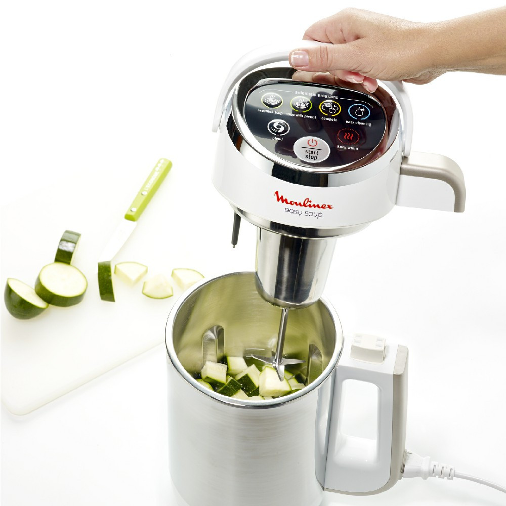 Crea deliciosas y nutritivas sopas en casa, ¡Ahorra tiempo en la cocina! Usa la Easy Soup de Moulinex para cocinar las más deliciosas sopas y compotas caseras. Sencilla y rápida, tus platos en 2 clics.Posee 4 programas de cocina: sopa crema (23 minutos), sopa con trocitos (25 minutos), compota (20 minutos) y batidos (4 minutos). Cuenta con aislamiento de doble pared y 40 minutos de función automática para mantener caliente tus preparaciones. 4 programas de cocina, función Easy Cleaning para una fácil limpieza. Posee doble aislamiento que mantiene la temperatura. Cuenta con una capacidad de 1,2 litros. Potencia: 1000 Watts. Garantía de fábrica por 1 año.