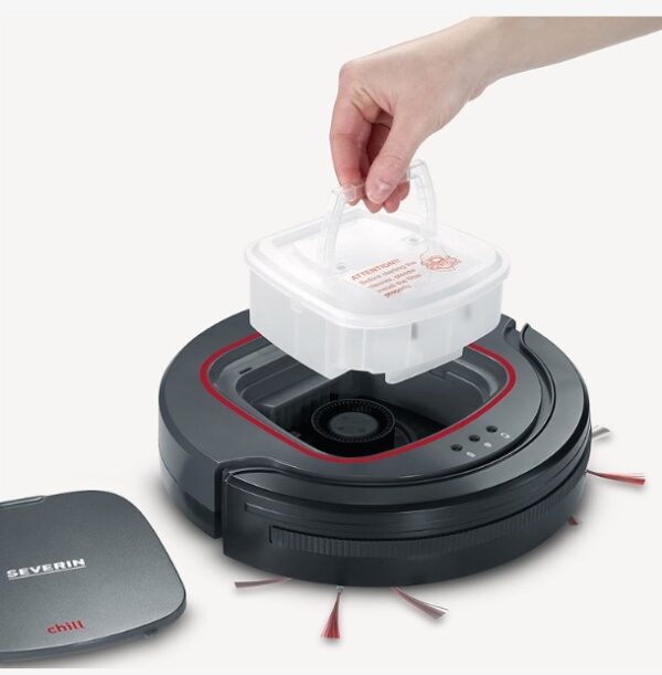 Mantén tu hogar limpio de manera eficiente y sin esfuerzo con el Robot Aspiradora Severin Chill, diseñado para aspirar suelos duros y alfombras de pelo corto de forma rápida, silenciosa y precisa. Su diseño bajo y compacto permite acceder fácilmente a zonas difíciles, como debajo de muebles y camas. Gracias a sus cepillos laterales extralargos, este robot limpia a fondo los rincones y bordes, eliminando suciedad sin necesidad de limpieza adicional. Además, su tecnología de sensores avanzada detecta escalones y desniveles, evitando caídas y garantizando un funcionamiento seguro en toda la casa. El recipiente de polvo se vacía de manera fácil e higiénica con la función Easy Opening, mientras que el SensorClean LED indica cuándo es necesario limpiarlo. Equipado con batería de iones de litio y un programa de limpieza en 3 fases, ofrece autonomía, potencia y eficacia en cada pasada. Características principales: Limpieza rápida y silenciosa de suelos duros y alfombras de pelo corto Cepillos laterales extralargos para esquinas y bordes Diseño bajo que permite limpiar debajo de muebles Tecnología de sensores para detectar escalones y desniveles Recipiente de polvo con función Easy Opening y SensorClean LED Programa de limpieza en 3 fases Batería de iones de litio de larga duración Incluye juego de accesorios Calidad alemana SEVERIN Con el Robot Aspiradora Severin Chill, mantener tu hogar limpio nunca ha sido tan fácil, preciso y seguro. Dimensiones del producto: 28,1 x 28,1 x 7 cm; 1,5 kg Garantía de 12 meses por desperfectos de fábrica. - Imágenes meramente ilustrativas.