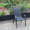 Dale estilo y confort a tu patio, terraza o jardín con esta silla apilable Sling. Con estructura de acero resistente y asiento de malla transpirable, es ideal para exteriores: cómoda, fresca y fácil de mantener. Su diseño moderno y apilable permite optimizar el espacio sin perder elegancia. Perfecta para combinar con cualquier mesa o mobiliario de exterior. Disponible en color negro. Dimensiones: L: 72 cm H: 96 cm A: 54 cm Imágenes meramente ilustrativas.