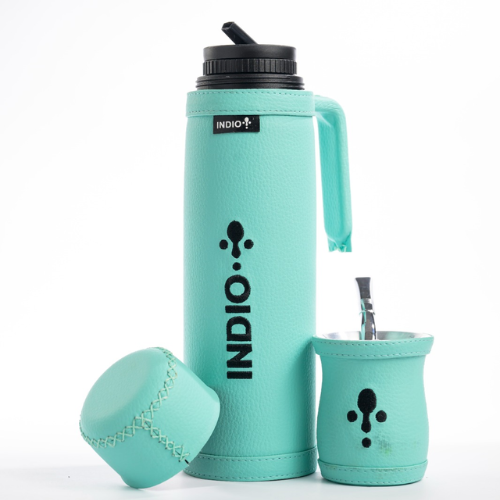 Termo Mate Indio 1 Litro Acero Inoxidable Simil Con Guampa Forrada+Bombilla – Verde Tiffany