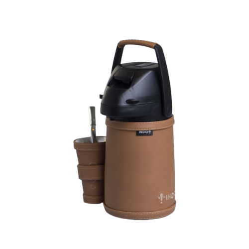 Termo Tereré Indio 1,3 Litros Acero Inoxidable Simil con Guampa – Marrón Suela