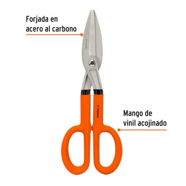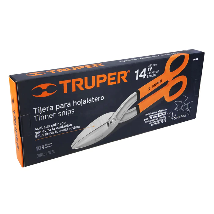 Forjada de acero al carbono con acabado satinado que evita la oxidación Acabado satinado resistente a la corrosión Hojas anchas y rectas superpuestas con perno de seguridad Mangos de vinil acojinado Lubrique frecuentemente ESPECIFICACIONES: - Largo total: 14" (36 cm)- Longitud de corte: 3.5" (90mm)- Dureza en filos: 55 H Rc- Peso: 1.14 kg- Empaque: Caja- Origen: México
