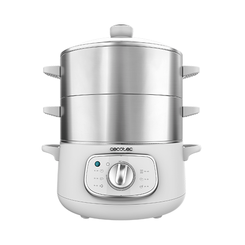 Vaporera eléctrica para cocinar al vapor de forma rápida y saludable, conservando todos los nutrientes y vitaminas. Altamente resistente. Vaporera con los recipientes de acero inoxidable. Máximo rendimiento. Saca provecho a sus 1300 W de potencia que cocinan tus platos eficazmente. Gran capacidad total de 10 L. Te ofrece la posibilidad de cocinar hasta 3 platos a la vez gracias a sus 3 recipientes. Tiempo ajustable. Regula el tiempo de tus preparaciones de 0 a 60 minutos. Máxima seguridad. Apagado automático si se queda sin agua durante el funcionamiento. Fácil de limpiar. Olla antiadherente y superficies fáciles de limpiar. Apta para grandes ingredientes. Garantia de 12 meses por desperfectos de fábrica. Imágenes meramente ilustrativas.
