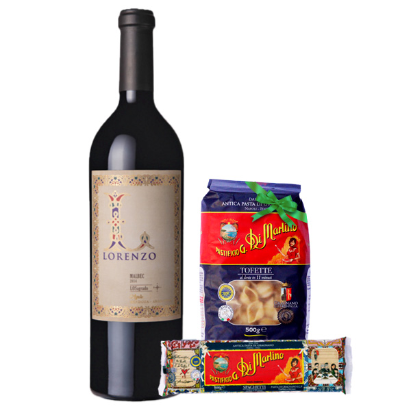 Vino Lorenzo LoSagrado Malbec 750 ml + 2 Pastas Italianas Pastificio Di Martino 500 Gramos